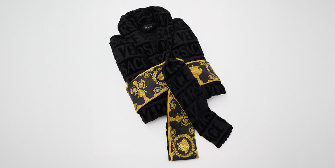 Versace浴袍百分百意大利制造,选用柔软的毛巾绒面料,吸水性能卓越,带来极致舒适体验。