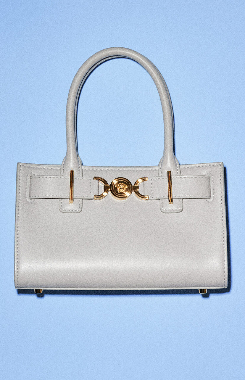 Medusa '95 系列于 2024 春夏米兰时装秀首次亮相,包括一款独特的横版托特包和手袋,包身中央饰以金属 Medusa 细节——该手袋系列因此得名 Medusa '95。 这个版本的品牌标志性 Medusa 是对 Versace 1995 春夏系列金属细节的全新演绎。在原版系列中,晚礼服肩带饰以缩小版 Medusa 图案,与希腊建筑风格金属五金件相互交织。