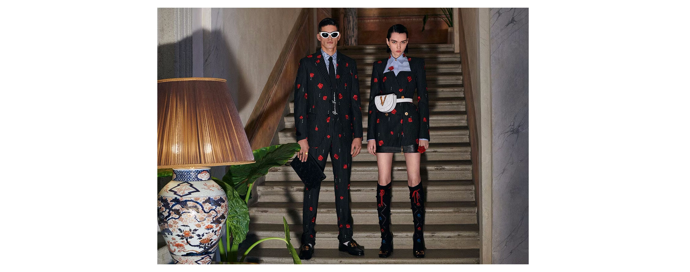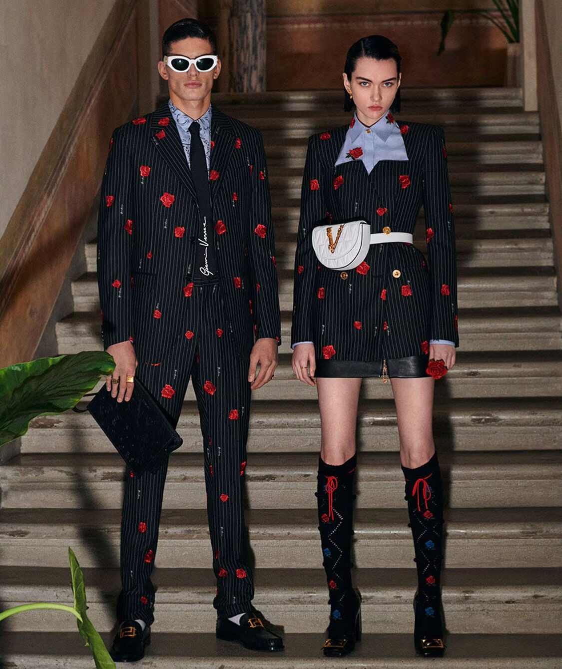 玫瑰是贯穿男士和女士系列的核心主题。玫瑰是纯洁和浪漫的传统象征,在荧光色调与扎染效果的映衬下,呈现出不规则的撞色设计。 引人注目的花束分别以梭织、刺绣与彩绘的形式融入传统的格纹精裁西装、毛绒针织衫与上下装单品中。